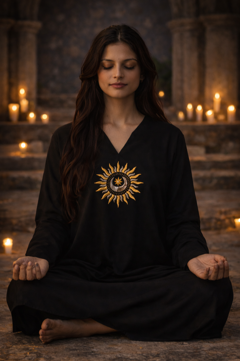 Imbibed with the power of sacred symbols each garment becomes a wearable talisman.What we wear affects our frequency. That is why we only use pure, natural, high-vibrational fabrics and why every symbol is meticulously hand embroidered by a master artisan with intention and grace.